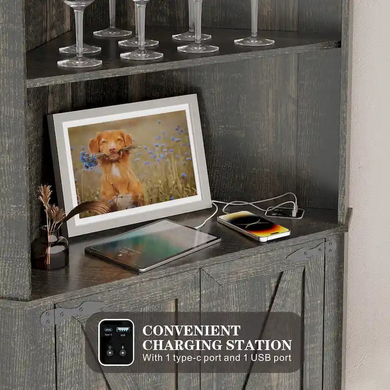 The corner design is conducive to saving space 3-Tiers of open shelves and cabinets with doors, which can store various decorations, books, etc.