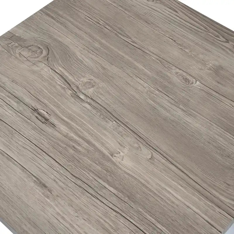 - Simple, urban visual with metal and printed wood blend