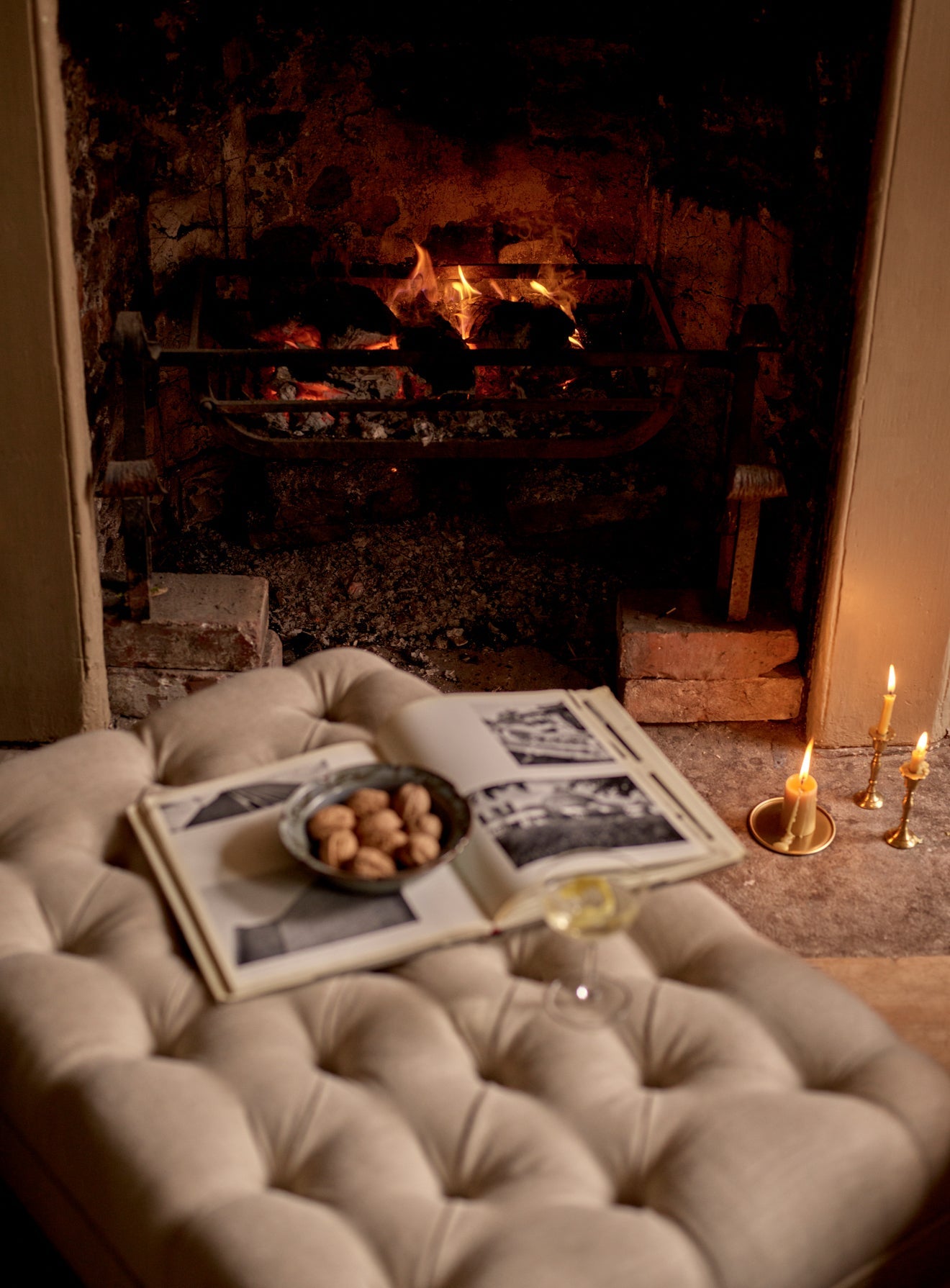 - A generously proportioned button-tufted footstool