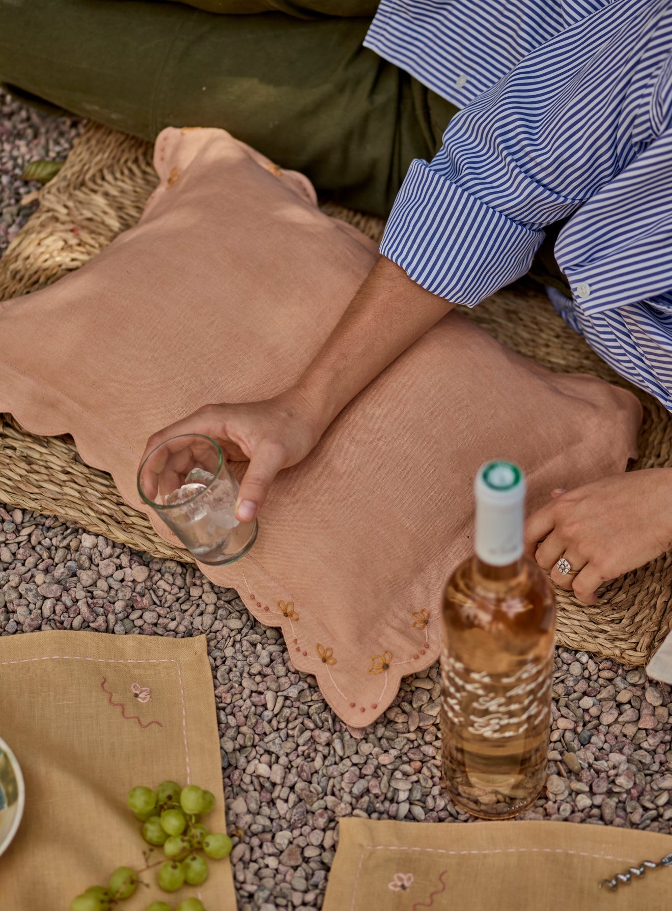 Grace Hand Embroidered Scalloped Cushion, Soft Peach