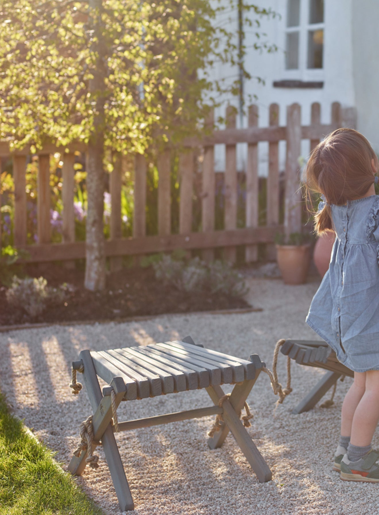 - A Scandinavian-style wooden garden stool