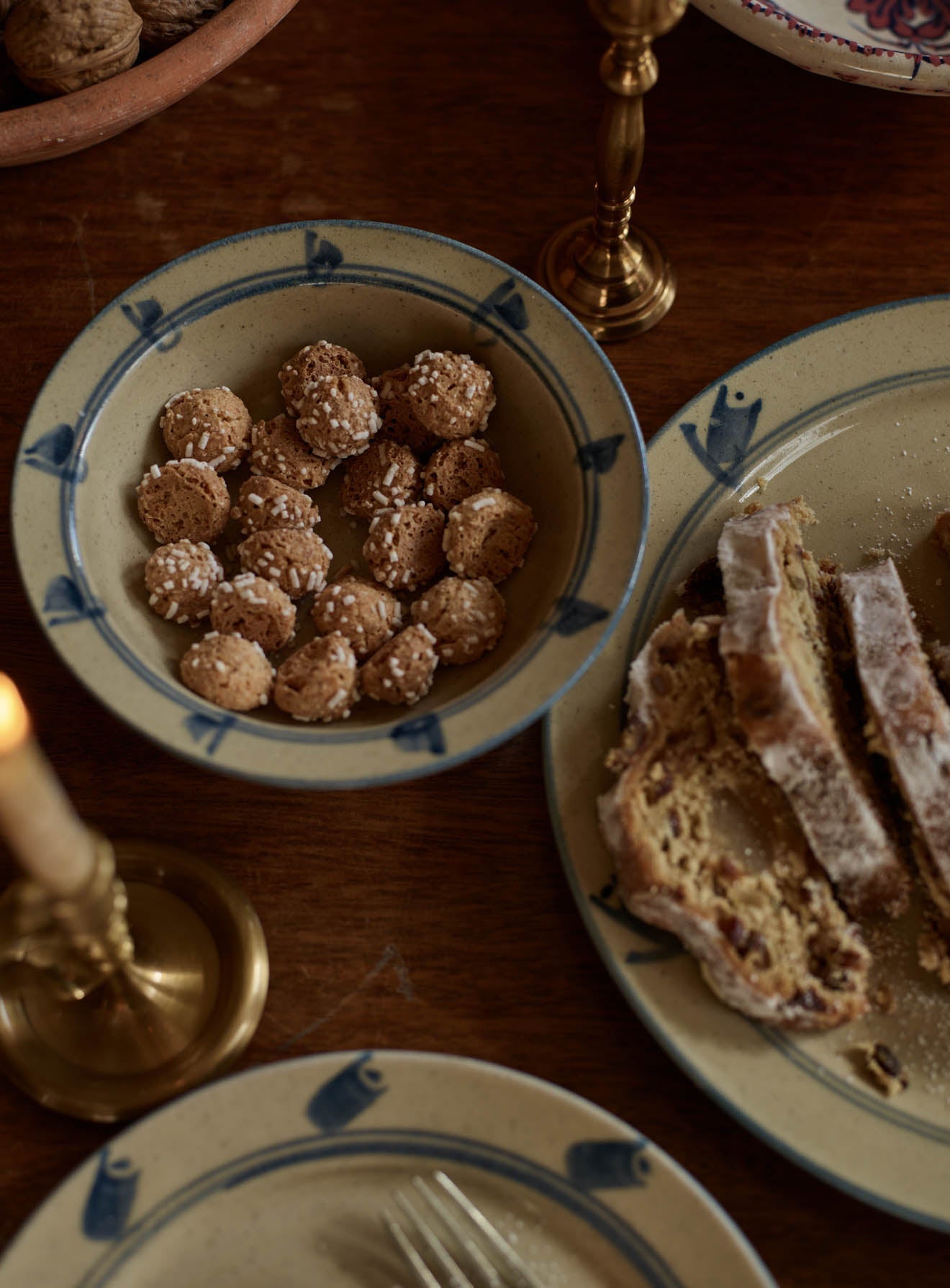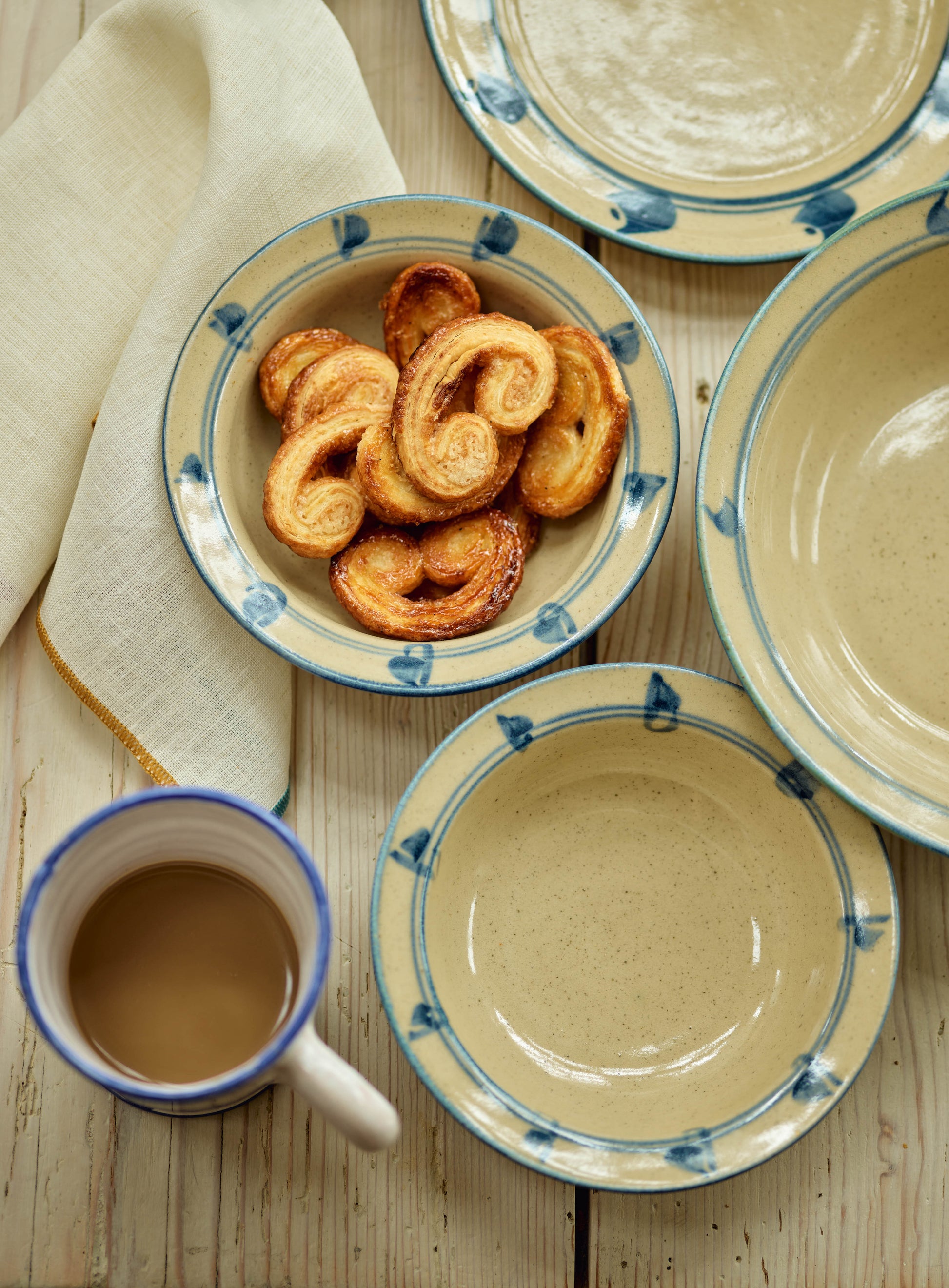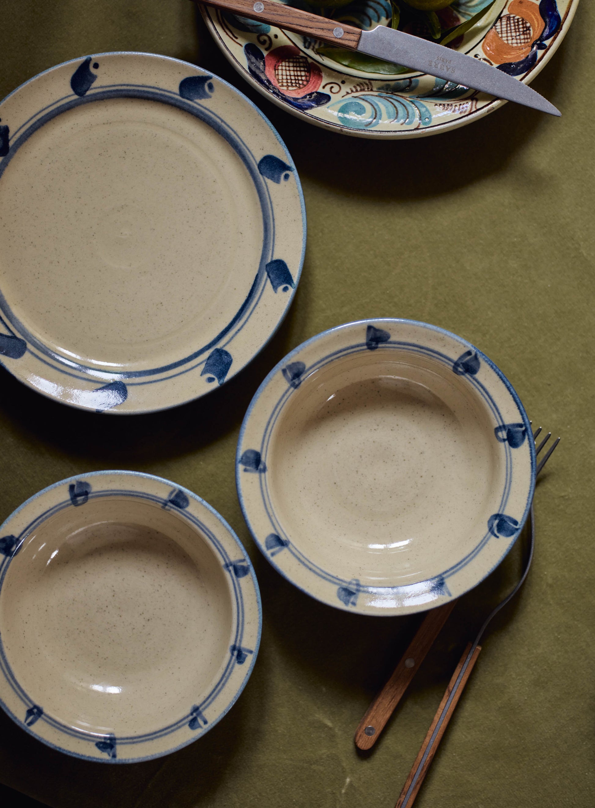 - A hand-thrown and painted cereal bowl invoking a traditional arts and crafts feel