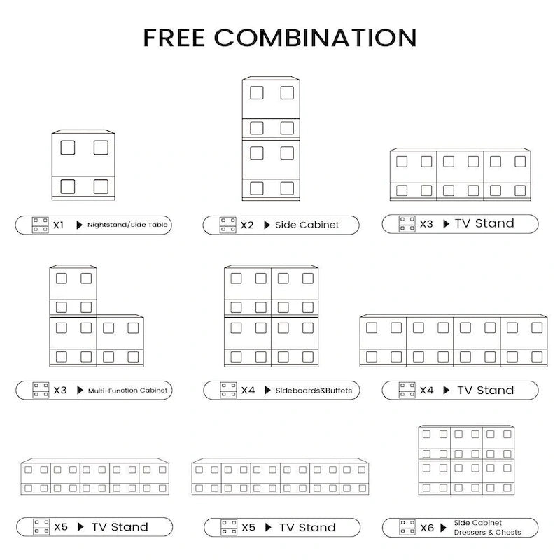 This sophisticated combination cabinet seamlessly integrates practicality and versatility with a subtle yet elegant design, offering a comprehensive palette of colors (including black and brown) that can be cleverly paired and assembled into diverse configurations. It is ideally suited for a broad array of home settings, whether it's by the bedside, as a decorative piece, in the dining area, or even around the TV.