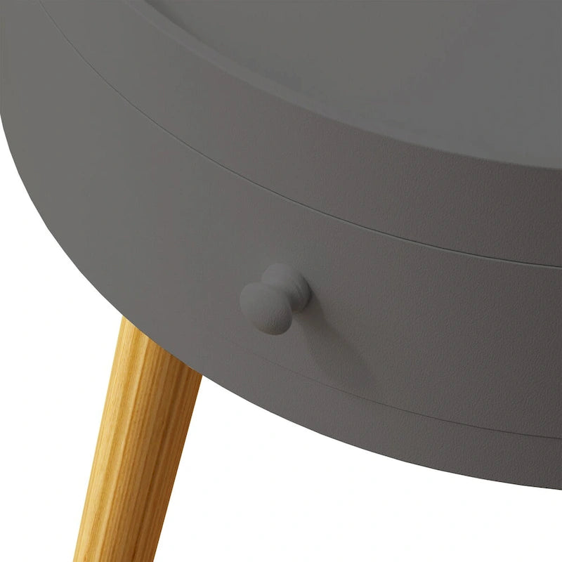 Modern Coffee Table with Drawer, Bedside Table, Sofa Side Table, Oak Table Legs, Suitable for Living Room and Bedroom,Gray