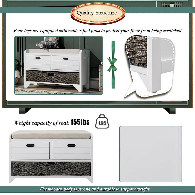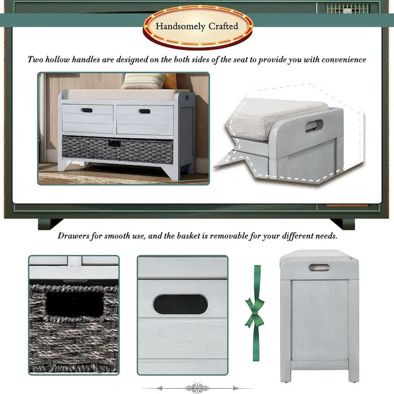 Nestfair Storage Bench Entryway Bench with Removable Basket and 2 Drawers